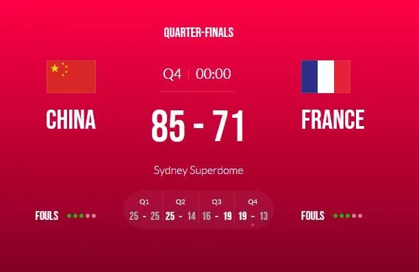 最终,中国女篮85:71战胜法国队,挺进世界杯四强。